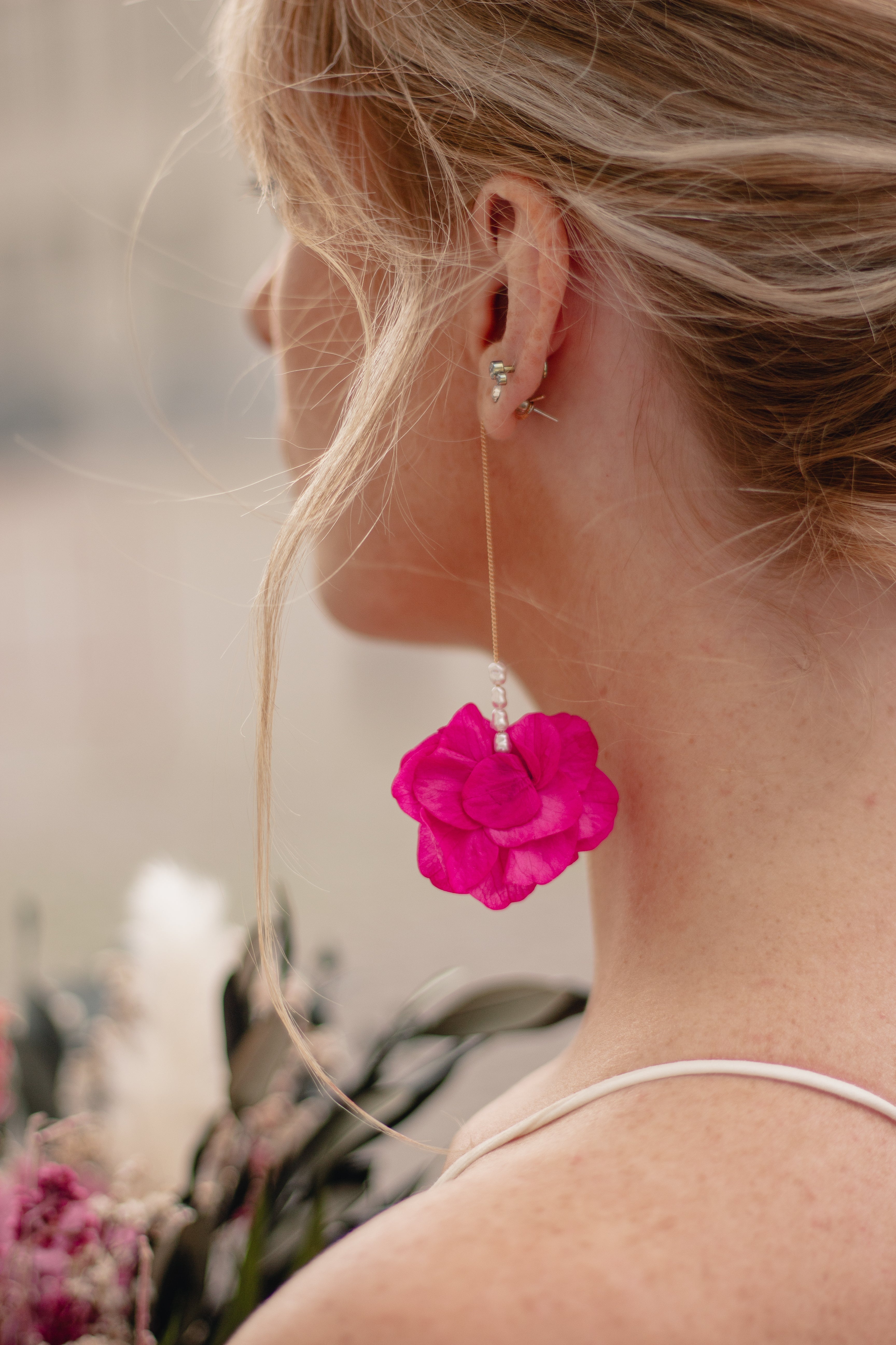 Giv din stil et løft med La Vie en Rose øreringene, da de ubesværet tilfører dit ensemble naturens levende farver og perlernes subtile elegance. Uanset om du forbereder dig til en særlig begivenhed eller tilføjer et strejf af raffinement til din hverdagstøj, er disse øreringe det perfekte valg for dem, der sætter pris på den fængslende tiltrækning af blomstertilbehør.