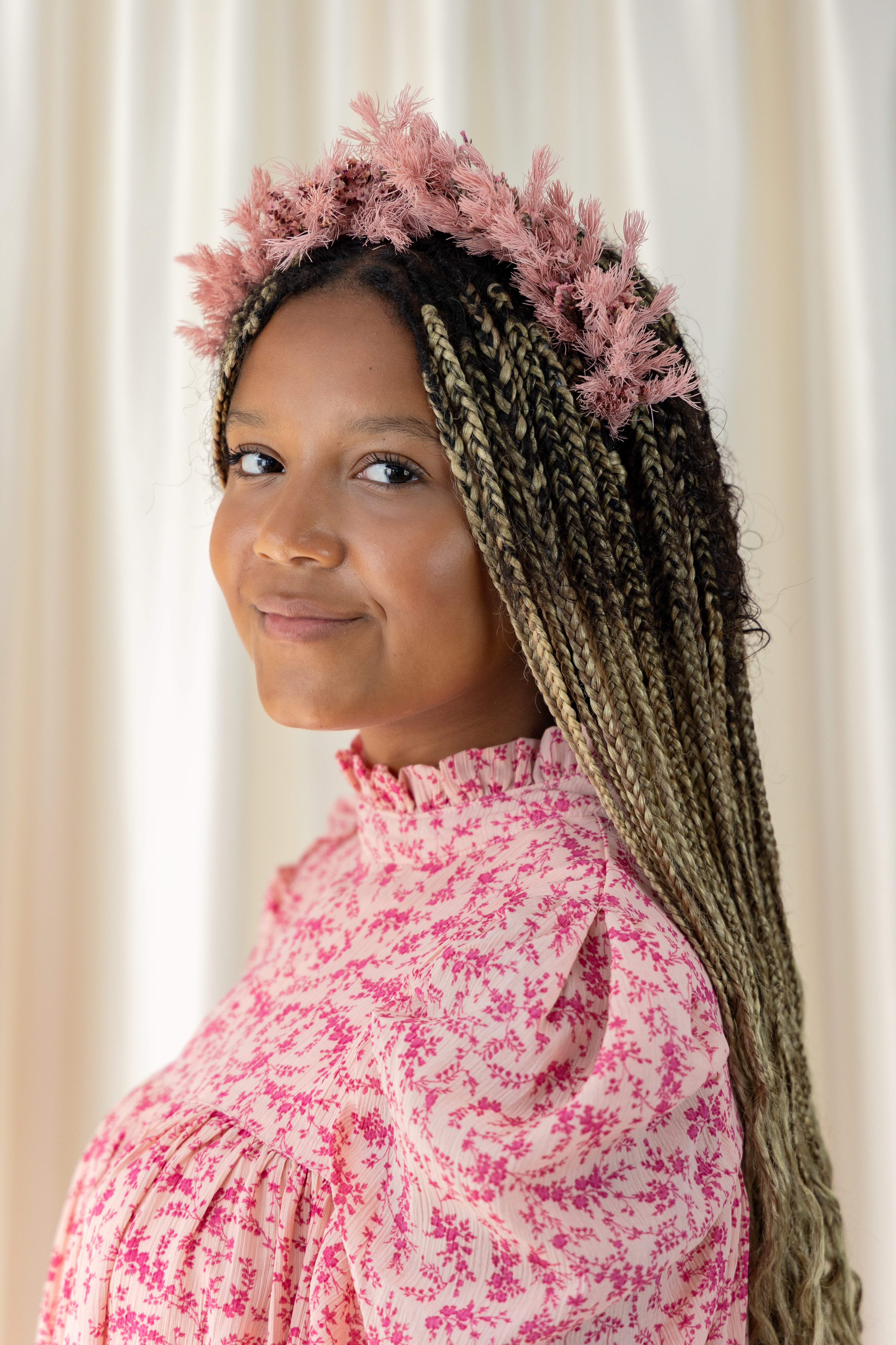 Dahlia Tiara er et yndefuldt og fortryllende tilbehør designet til kvinder, der sætter pris på subtiliteten og elegancen af botaniske elementer. Dens kombination af bløde og pastelrosa nuancer skaber en harmonisk og dejlig krone, der tilføjer et strejf af naturlig ynde til dit look, hvilket gør den perfekt til bryllupper, havefester eller enhver begivenhed, hvor du vil omfavne en romantisk æstetik.