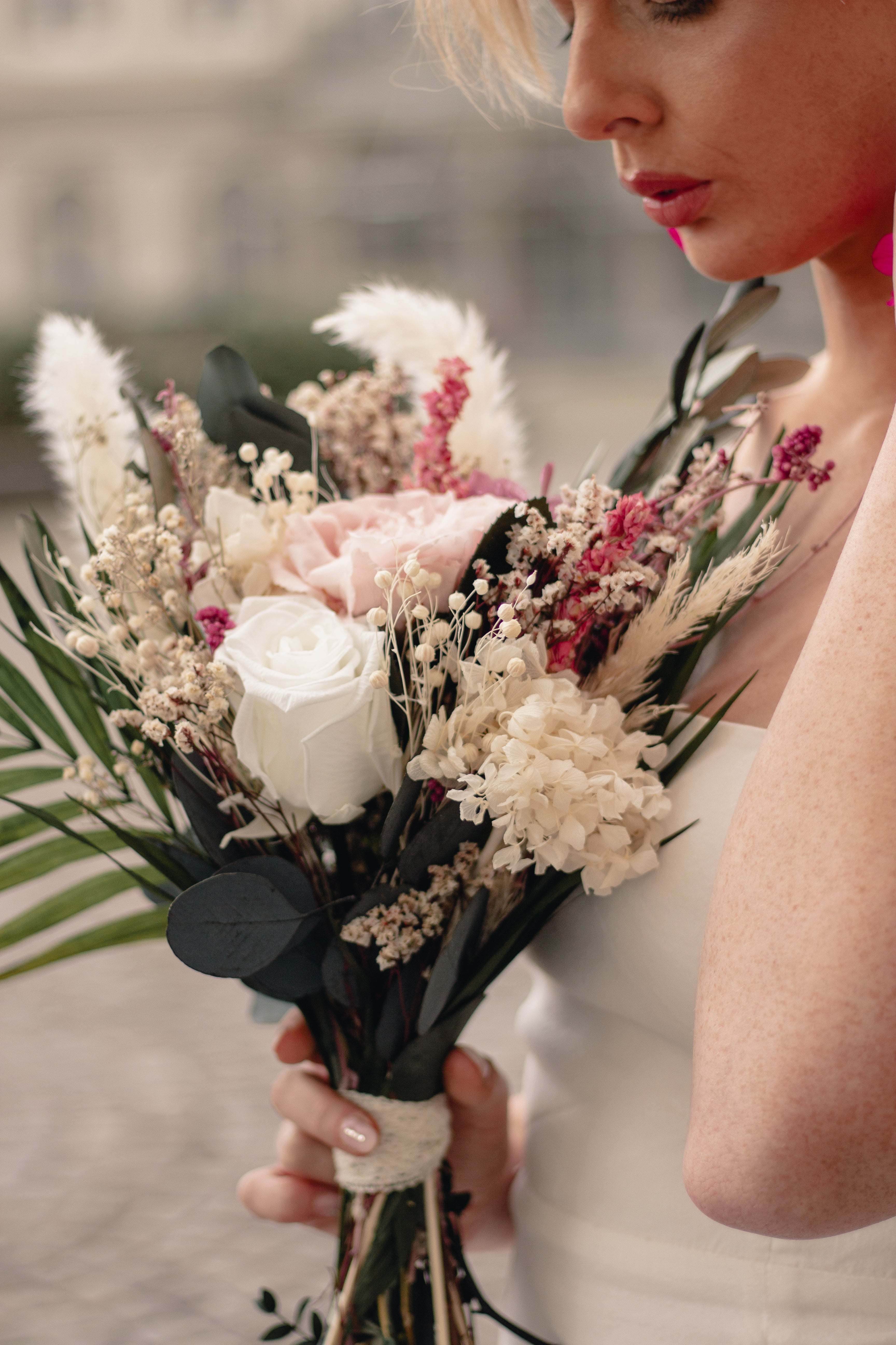 시간이 지남에 따라 말린 꽃에 먼지가 쌓이면 헤어 드라이어 (열없이 가장 낮은 속도로)로 부드럽게 청소하거나 깃털 먼지떨이를 조심스럽게 사용할 수 있습니다. 너무 자주 하지 말고 필요한 경우에만 이 작업을 수행합니다.