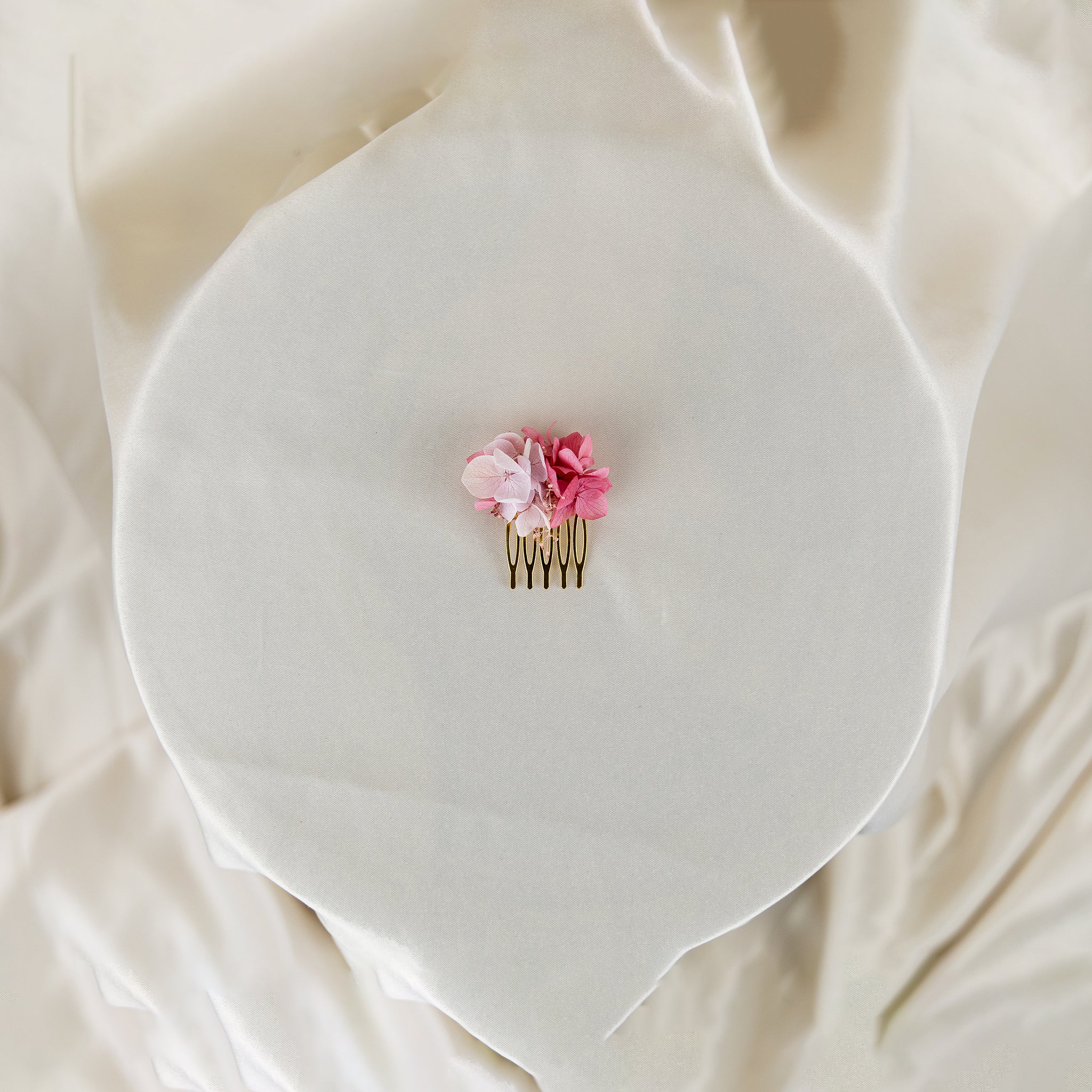 Leah-Rose Mini Haircomb-여성과 어린이 모두를위한 모든 헤어 스타일에 자연스러운 아름다움을 더하는 데 완벽한 아름답고 섬세한 헤어 액세서리. 다양한 핑크 hortensias로 제작 된이 멋진 헤어 빗은 머리카락에 팝 컬러를 추가하기에 완벽한 크기입니다.