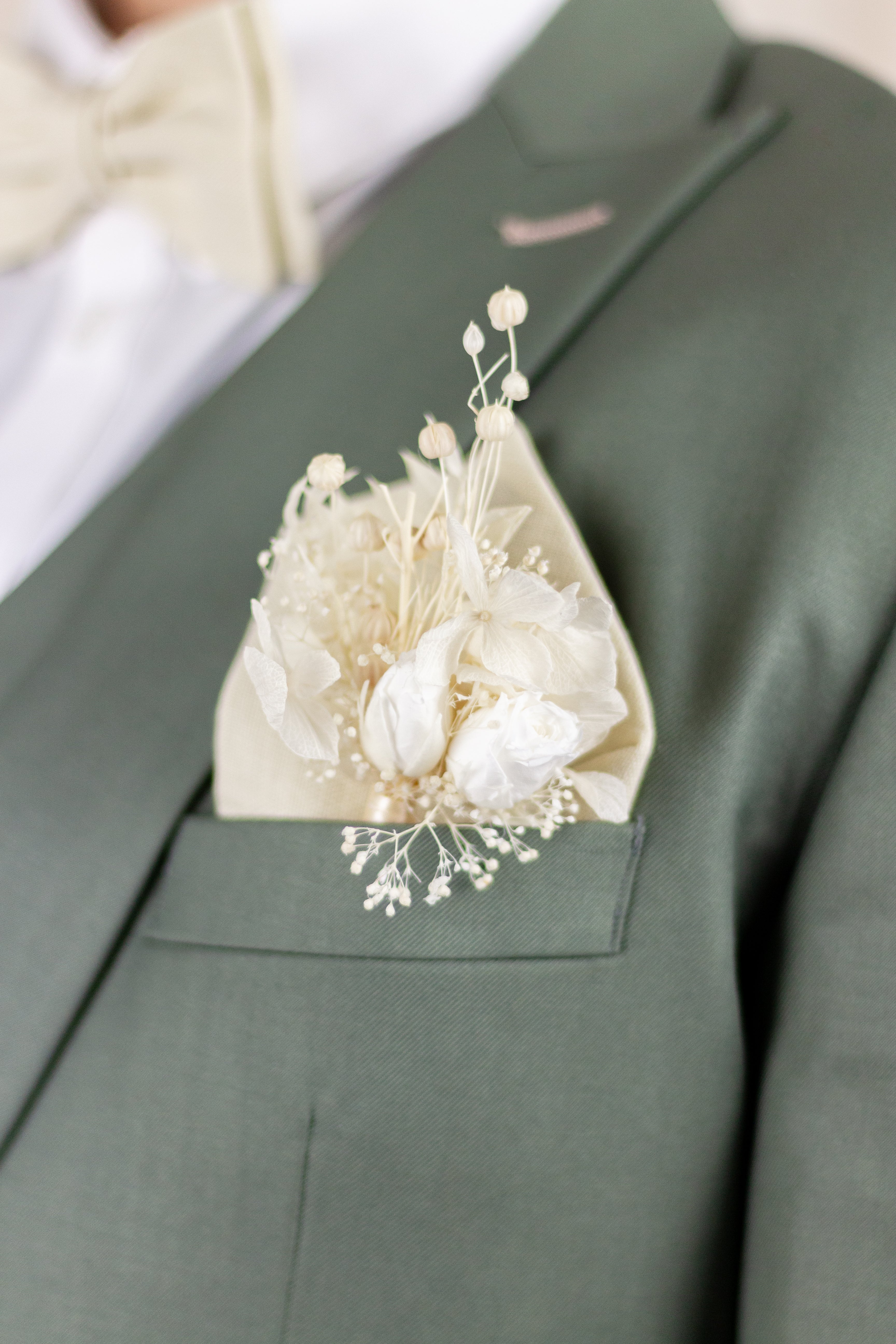 Designed with simplicity and elegance in mind, the Mia Men's Corsage is the perfect accessory for any groom, best man, or father of the bride. Its delicate design is sure to catch the eye and make a statement, while the white flowers, hortensias, and mini gypsophila add a touch of natural beauty and sophistication.